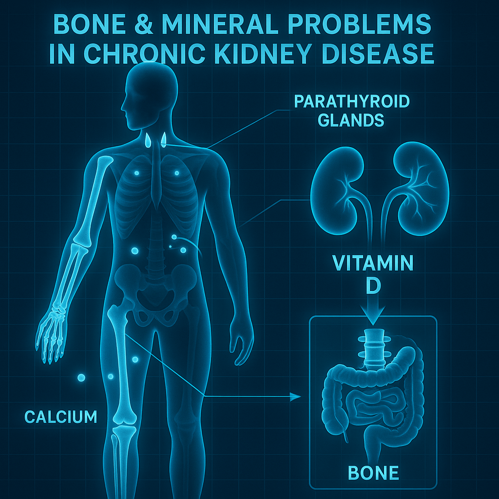 Your kidneys help keep the right balance of calcium, phosphorus, and vitamin D in your body. When kidneys don’t work well, these minerals can get out of balance. This can make your bones weak and increase your risk for heart problems.
